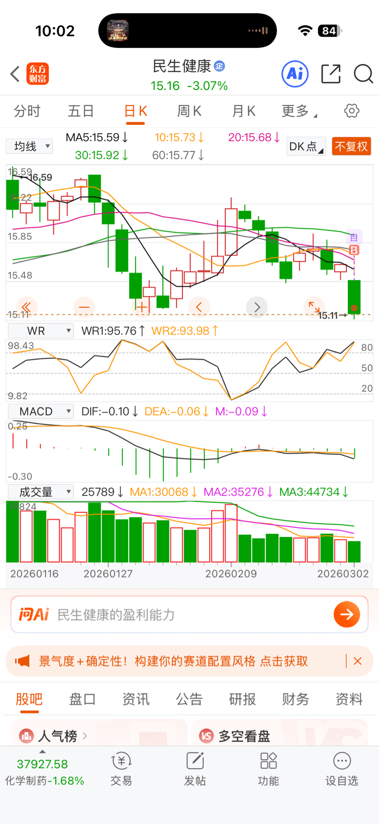 $民生健康(SZ301507)$ 建个底仓