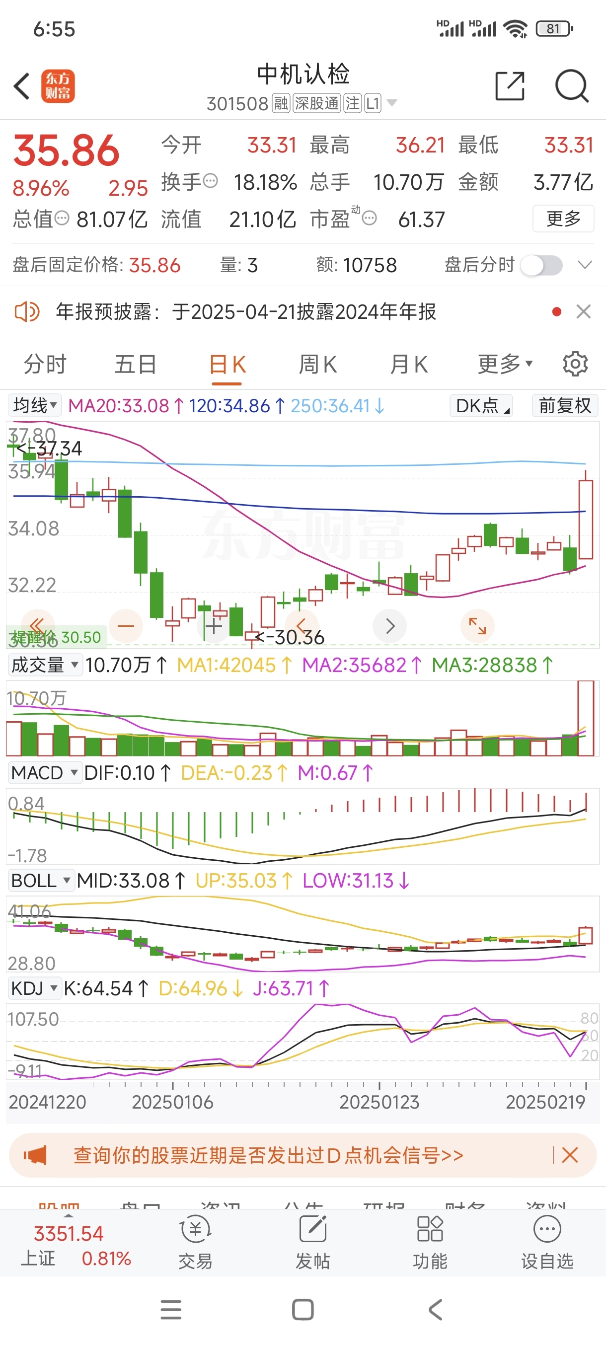 $中机认检(SZ301508)$ 接下来回踩半年线,再突破年线,加速上涨!!!