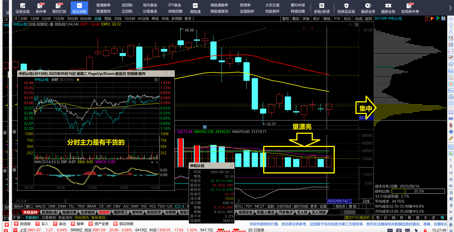 这个位置带点量冲的越高越好--不管后续是涨是跌--都便于操作!!最起码能让中机活跃度起来,增加主力的对手盘,也可以让筹码充分交换!!