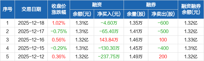 中机认检:融资净偿还4.6万元,融资余额1.31亿元(12-18)