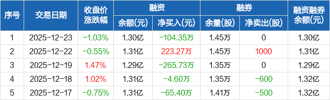 中机认检:融资净偿还104.35万元,融资余额1.3亿元(12-23)