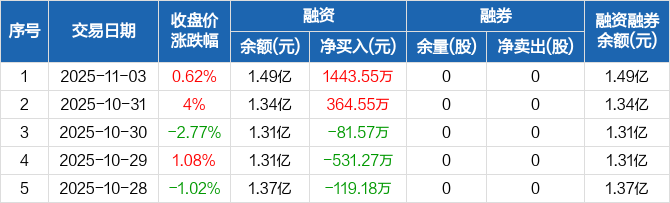 金凯生科:融资净买入1443.55万元,融资余额1.49亿元(11-03)