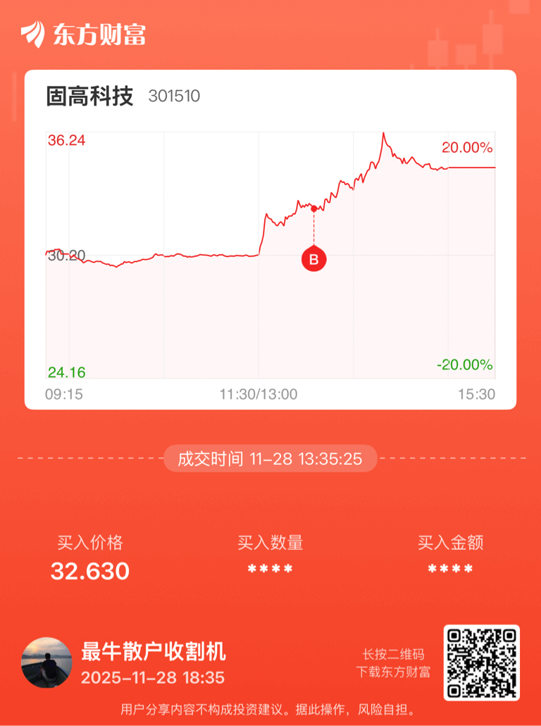 $固高科技(SZ301510)$ 底部放量,岂有不买之理?