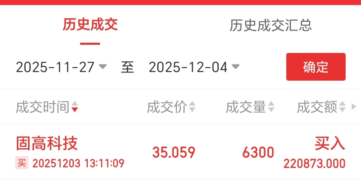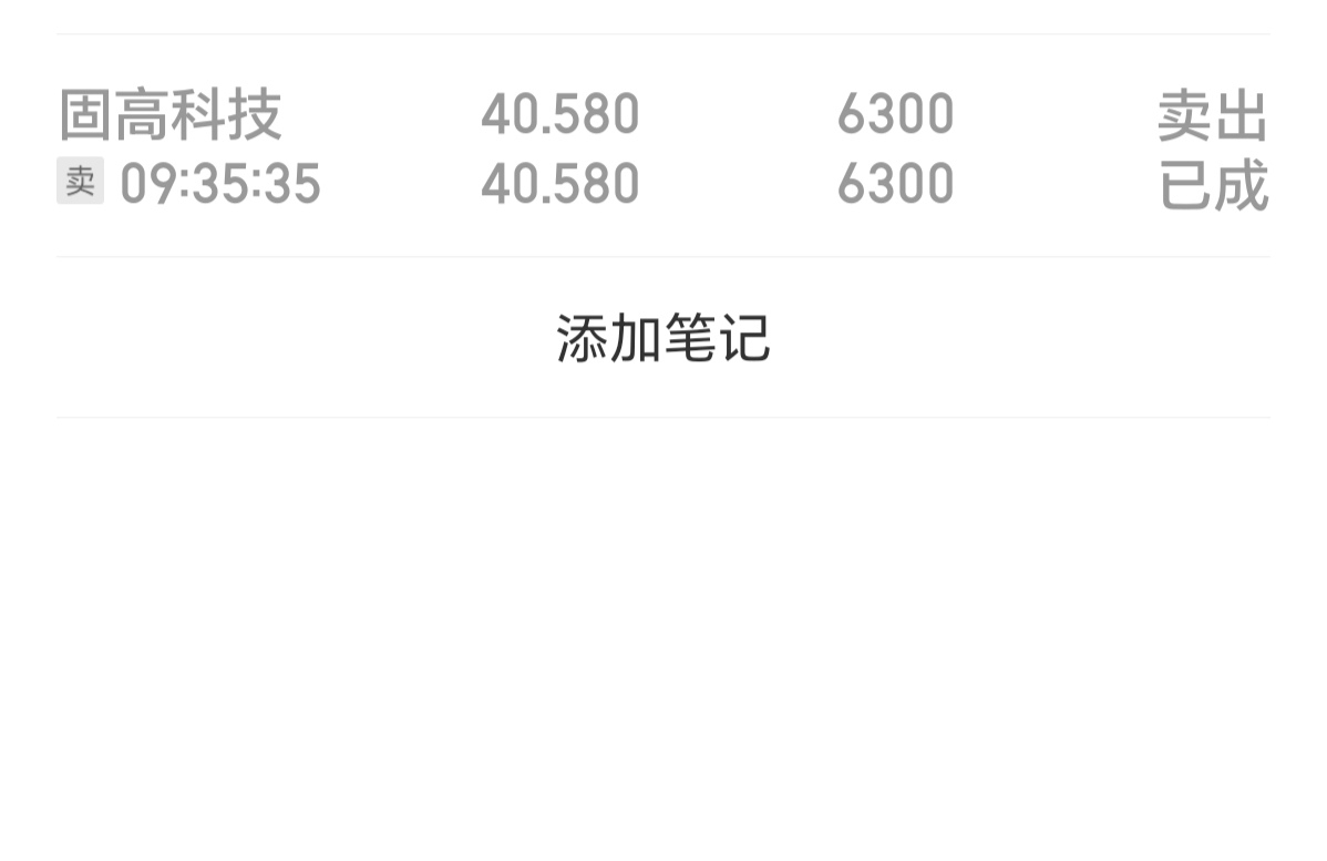 昨天下午开盘不久,固高科技在盘中突然冲高,我经不起诱惑立即挂单买了进去,接着冲高回落,股吧有位股友说刚刚那位买了,当时心中很是委屈,到收到盘时跌了4%,今天开盘高开高走,心中很是惊喜,第一次冲击涨停就挂单卖出,获利3万余元,当一天真的很值得,落袋为安,祝留下的股友日进斗金!