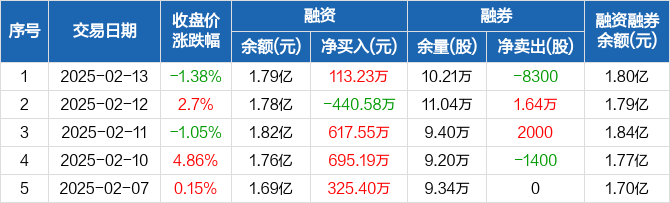 德福科技:融资净买入113.23万元,融资余额1.79亿元(02-13)