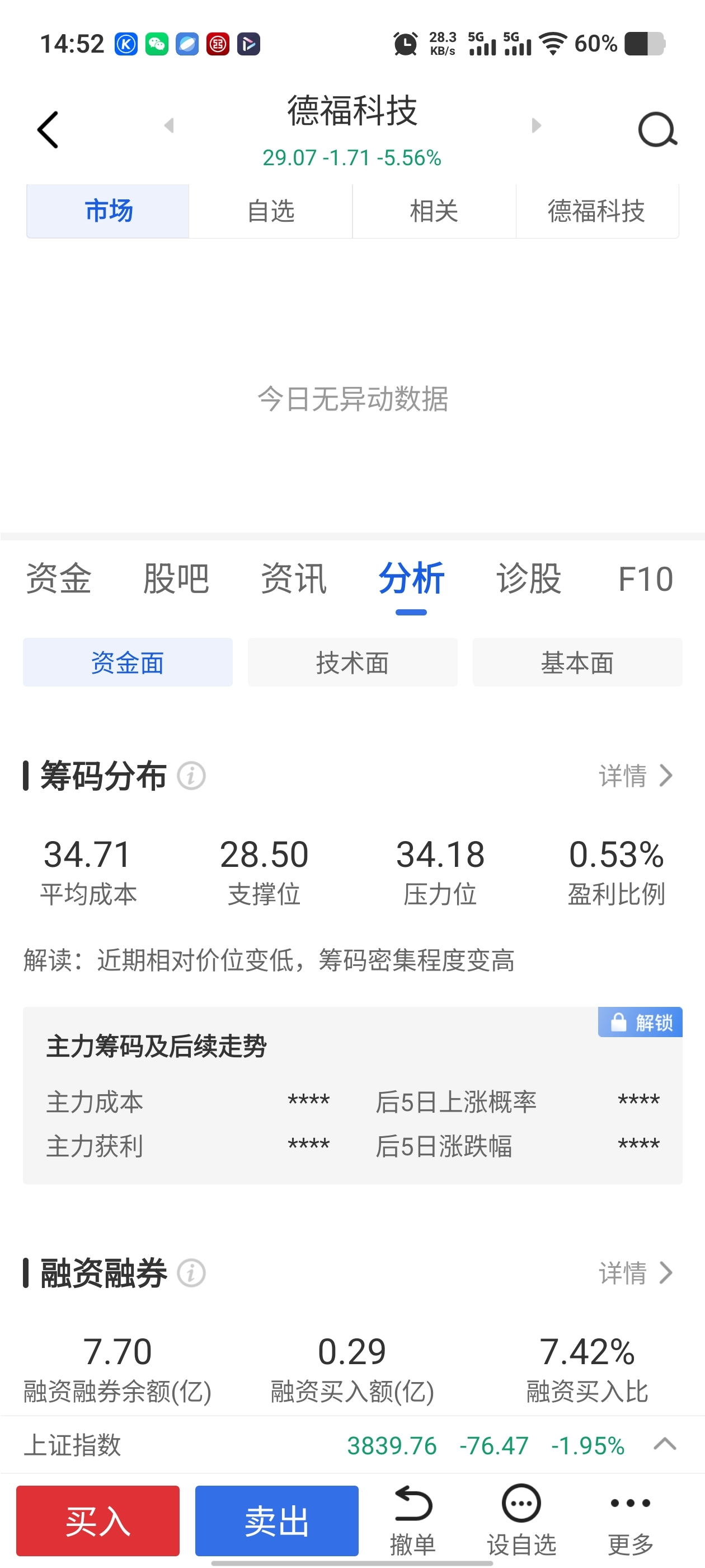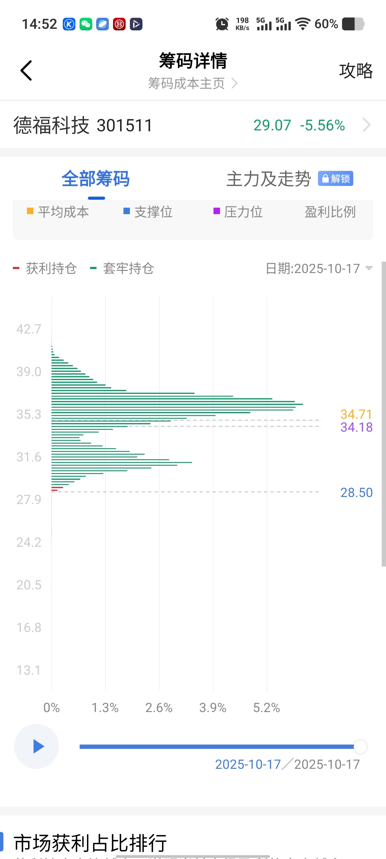 $德福科技(SZ301511)$ 平均成本34.71元,获利盘0.53%,也就是99.47%的人都亏损了,同时均价高于当前价格5.64元,可以说就是未来股价的大底部!除非是系统风险,否则将继续加仓,知道满仓!拿好。坚定看多,目标100元!