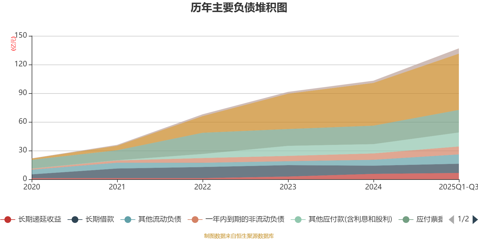 负债重大变化方面,截至2025年三季度末,公司长期应付款合计较上年末增加401.29%,占公司总资产比重上升1.45个百分点;其他应付款(含利息和股利)较上年末增加51.29%,占公司总资产比重上升1.25个百分点;短期借款较上年末增加31.85%,占公司总资产比重上升1.15个百分点;其他流动负债较上年末增加58.06%,占公司总资产比重上升1.02个百分点。