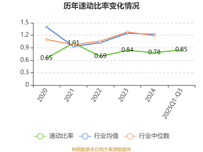 2025年前三季度,公司流动比率为0.99,速动比率为0.85。