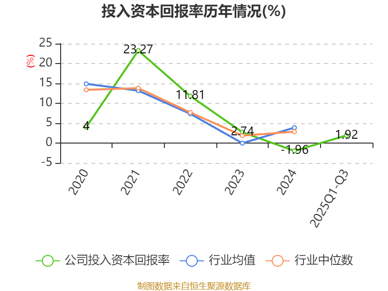 盈利能力方面, 2025年前三季度公司加权平均净资产收益率为2.64%,同比上升7.56个百分点。公司2025年前三季度投入资本回报率为1.92%,较上年同期上升3.66个百分点。