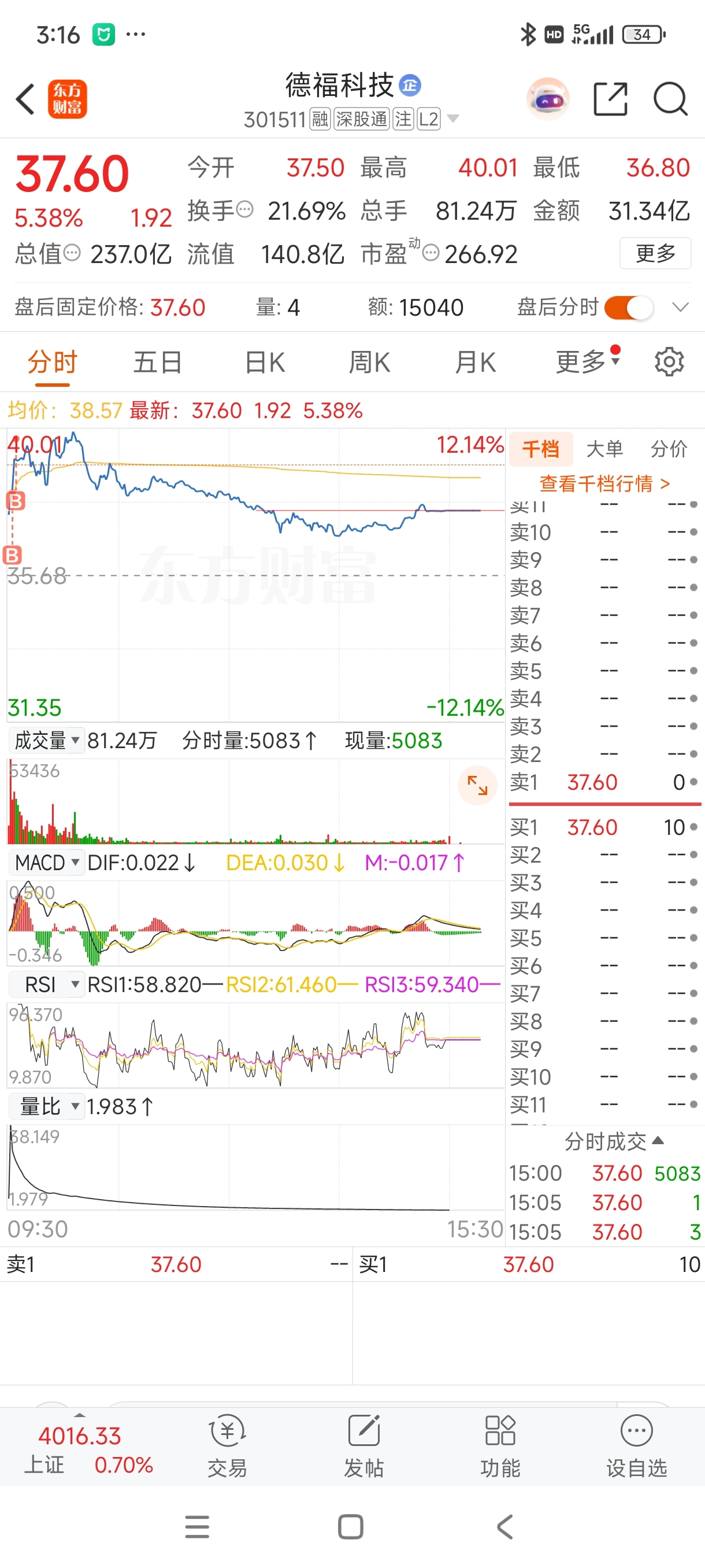 $德福科技(SZ301511)$ 断断续续买过这个票 这次我做好做长期股东了 成本38.9