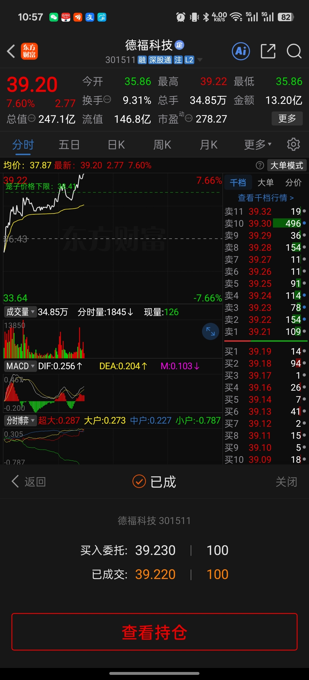 $德福科技(SZ301511)$ 完了,挂山顶了#强势机会#