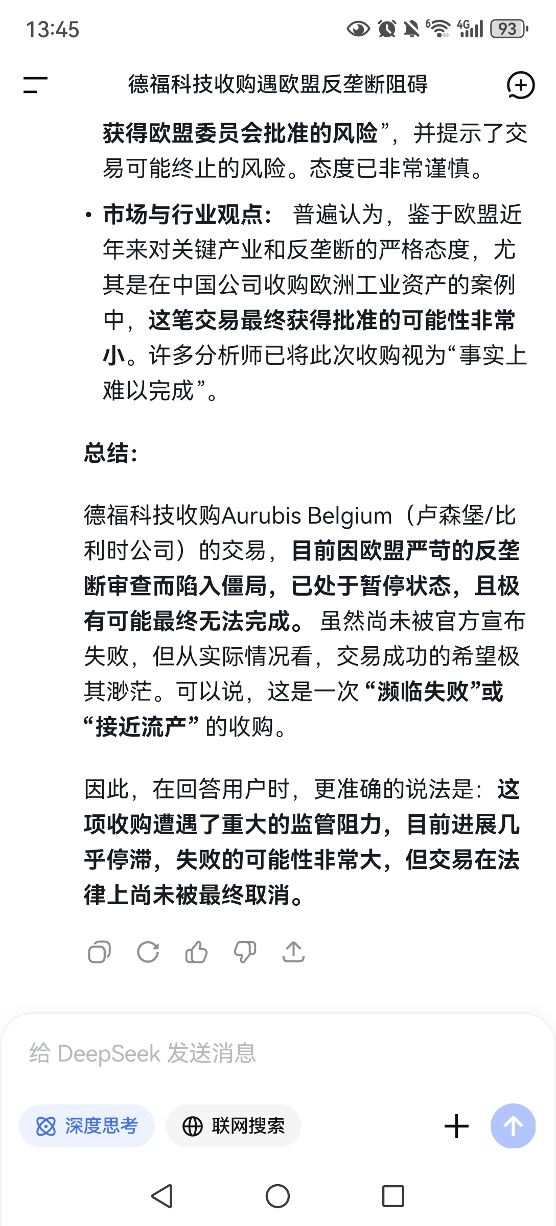 $德福科技(SZ301511)$ 收购成功只有理论上的可能性,欧盟一直阻止所以反复拖延,这雷估计用不了就会爆