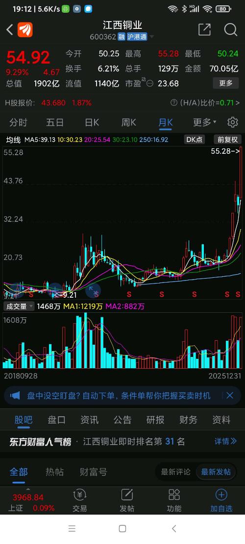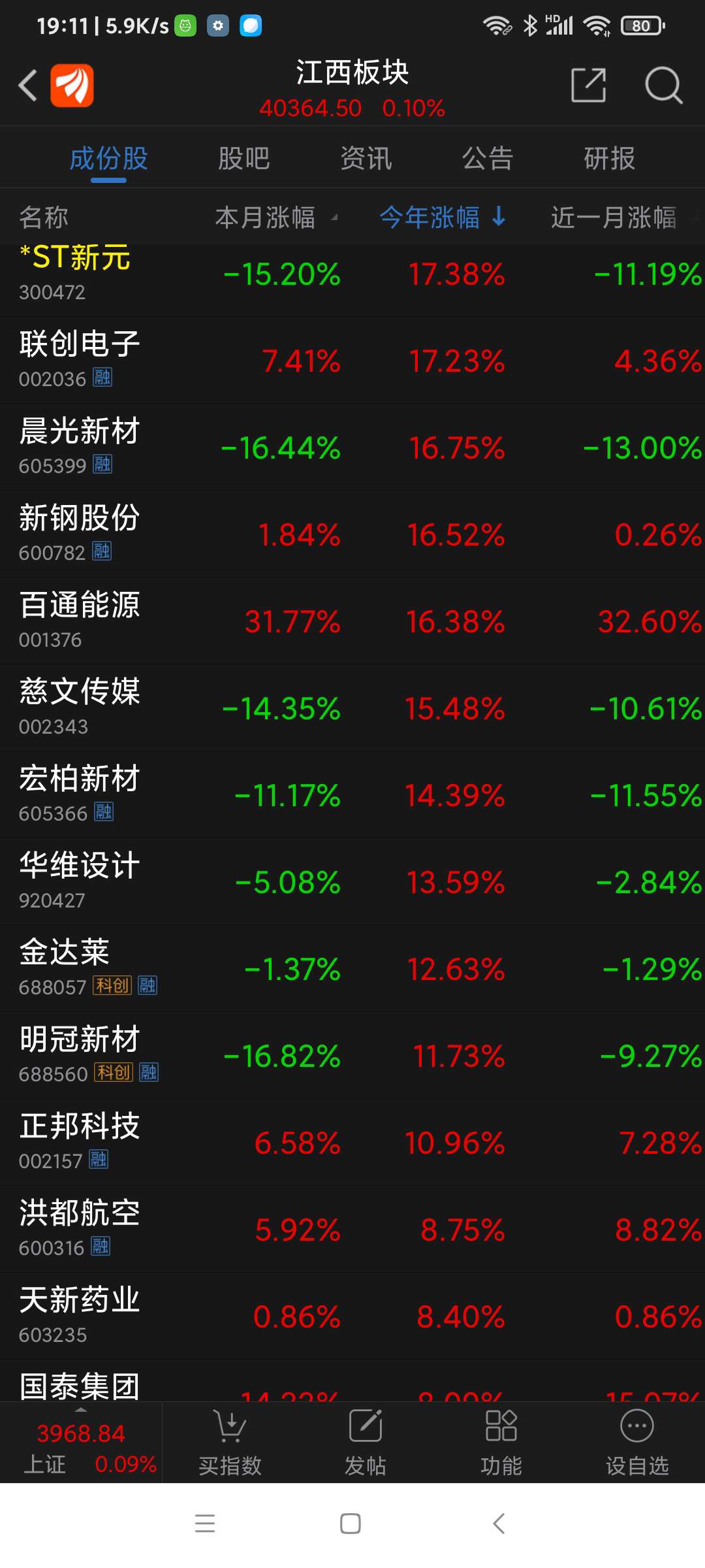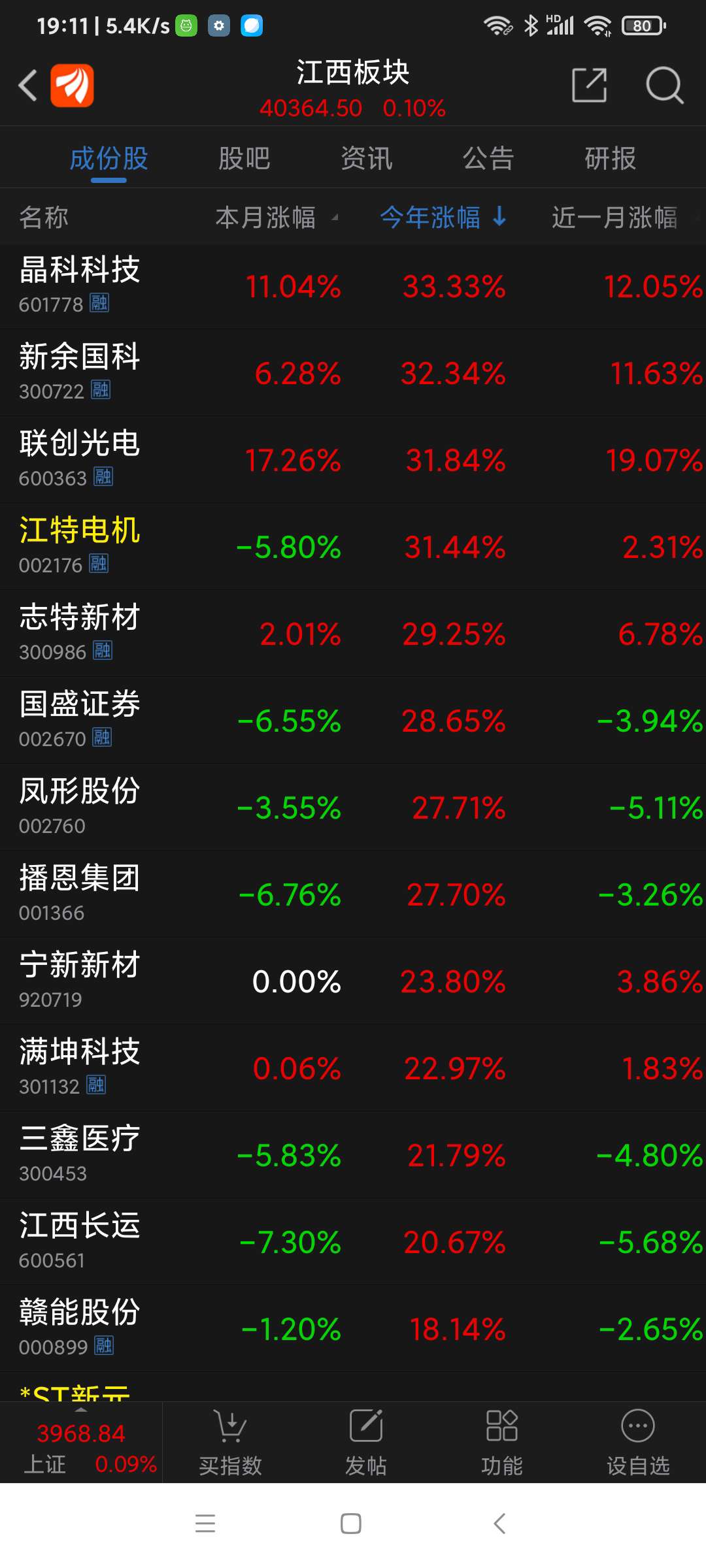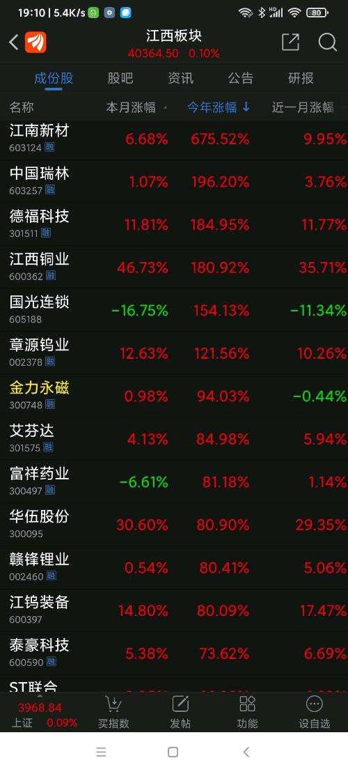 德福科技,25年江西板块(91个股票)涨幅第一名,江西铜业、国光连锁分列二、三名。