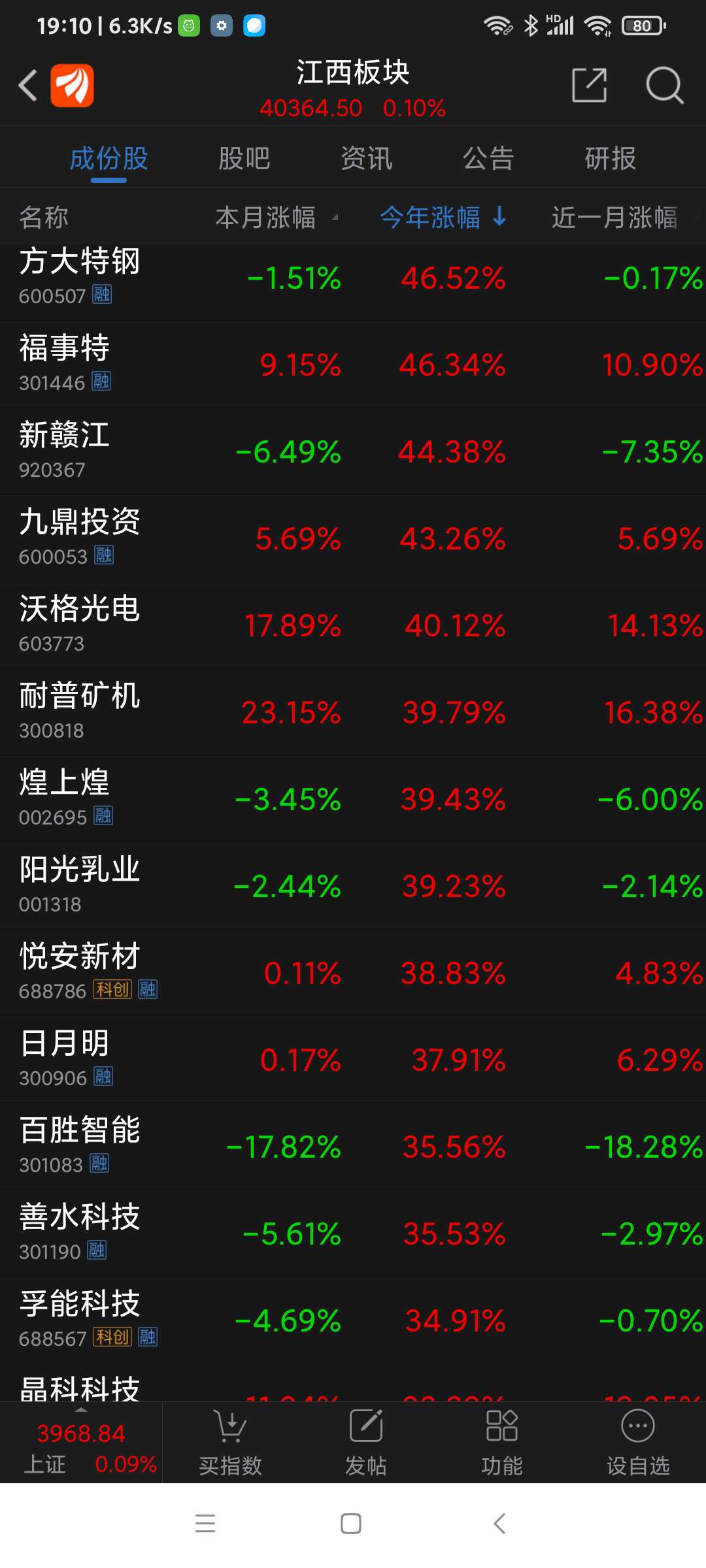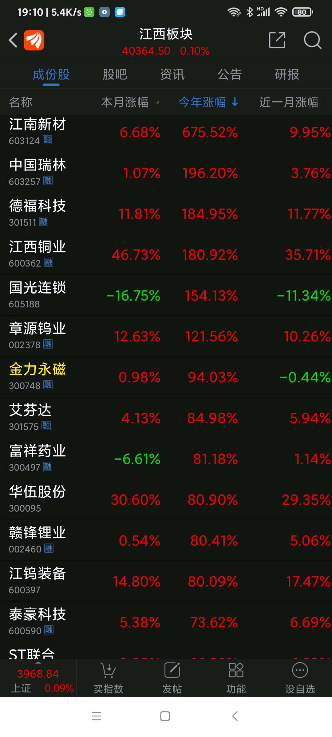 德福科技,25年江西板块(91个股票)涨幅第一名,江西铜业、国光连锁分列二、三名