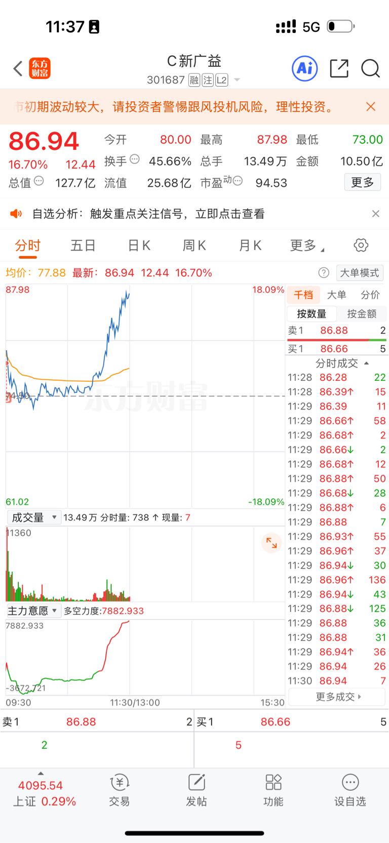 $德福科技(SZ301511)$ 在这大仓位等风来,1/10的仓位去打野,不然天天看着外面涨我心里像吃了老醋一样的酸