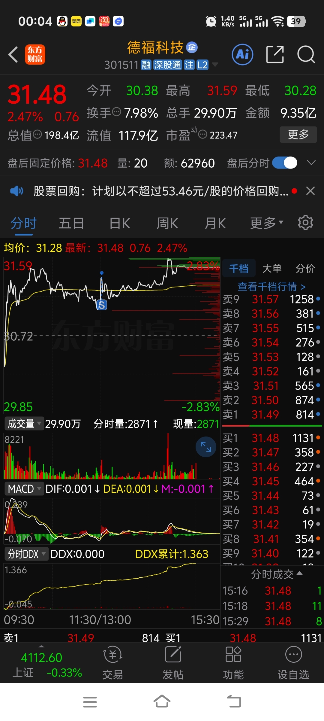 $德福科技(SZ301511)$ 感觉我是股市明灯,晚上出一堆利好,我从40熬到今天,实在忍不住割了……