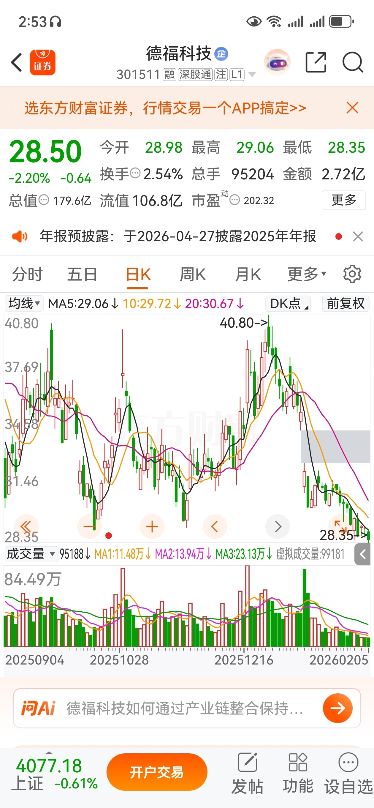 $德福科技(SZ301511)$ 非常陡的下降线