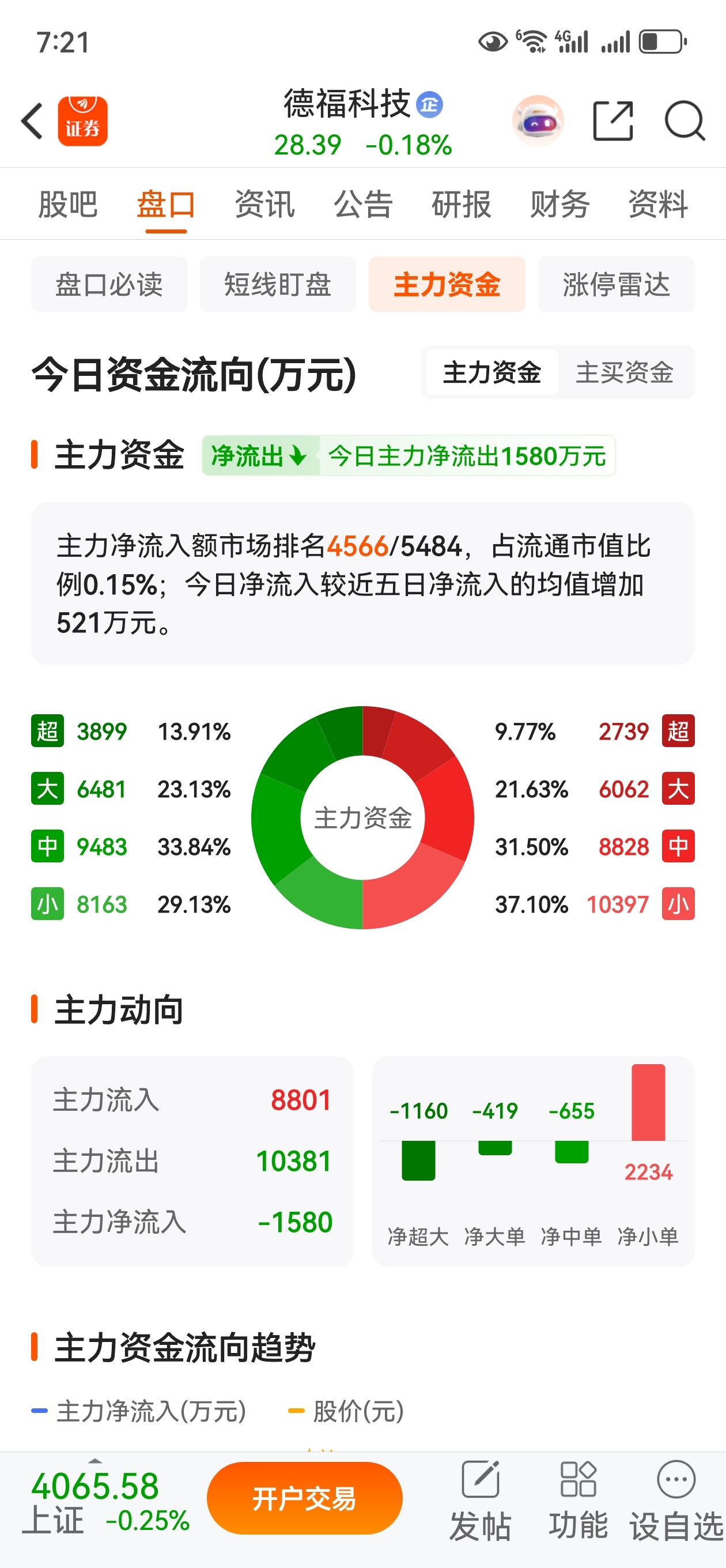 $德福科技(SZ301511)$ 所属板块全涨,德福跌;主力资金净流出,流入排名4500以后,垃圾到极限了。