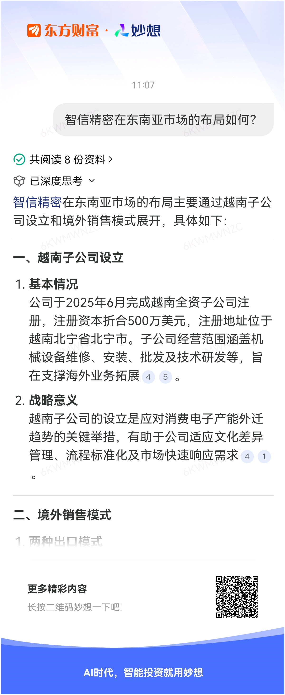 #@妙想,你怎么看?# 妙想一下:智信精密在东南亚市场的布局如何?