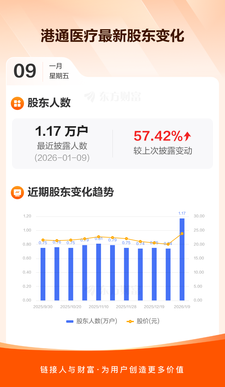 港通医疗:截至1月9日最新股东户数1.17万户,较上期增加57.42%