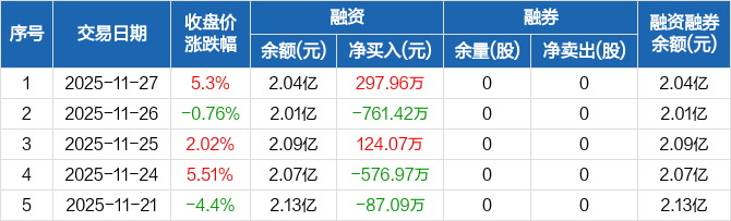 陕西华达:融资净买入297.96万元,融资余额2.04亿元(11-27)