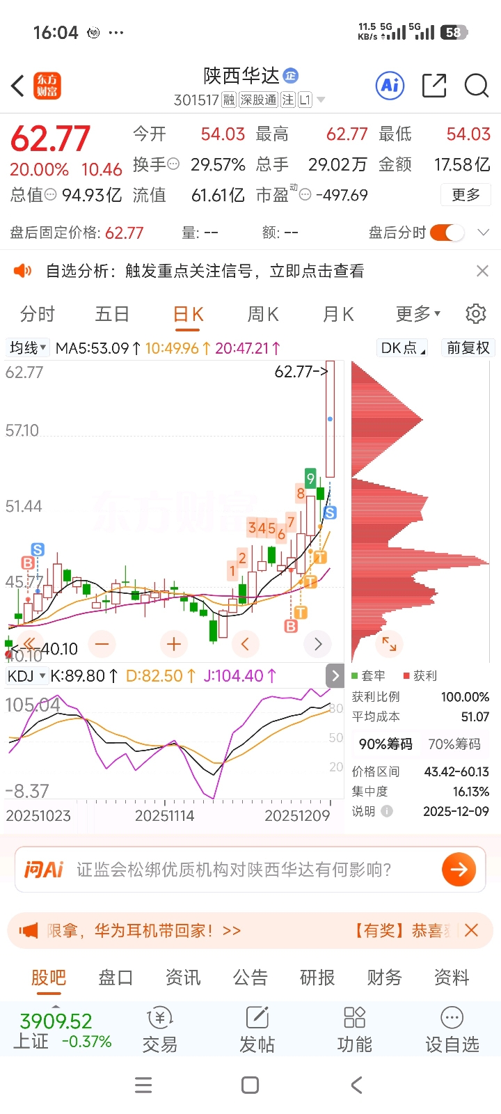 昨天所有板块都强,就它弱,就清了九成仓。没想到今天直接起飞,错过了。干脆底仓也出了,删除自选。