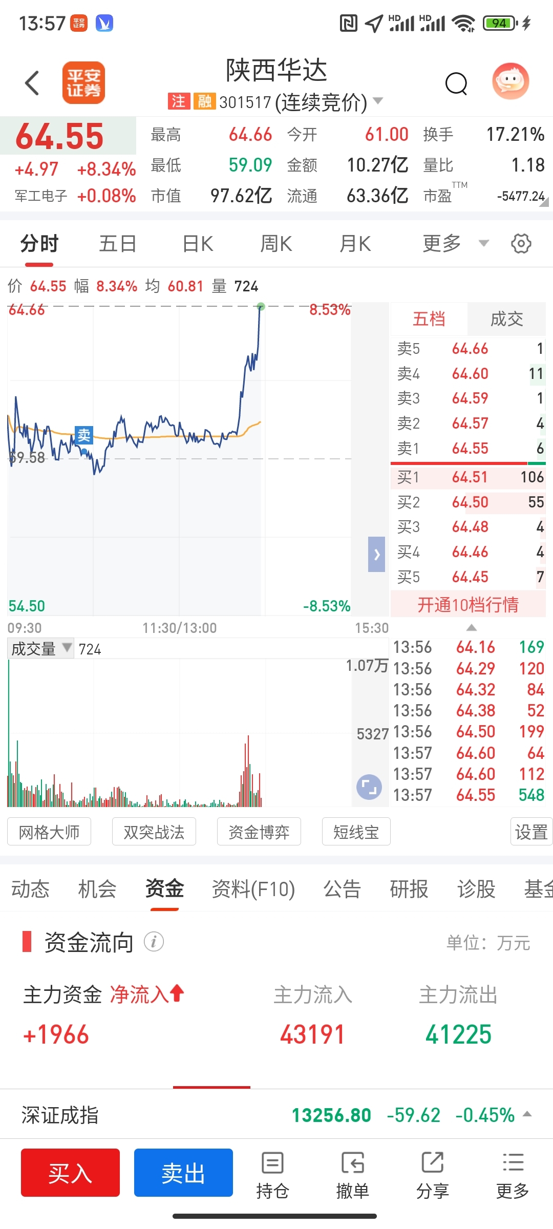 $陕西华达(SZ301517)$ 倒在黎明前!上午卖飞了!
