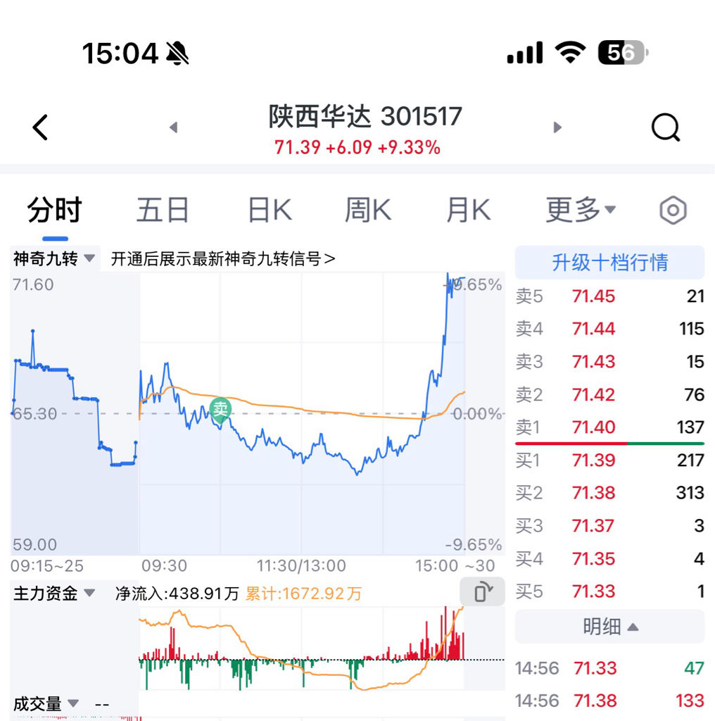 $陕西华达(SZ301517)$ 哦,草。
