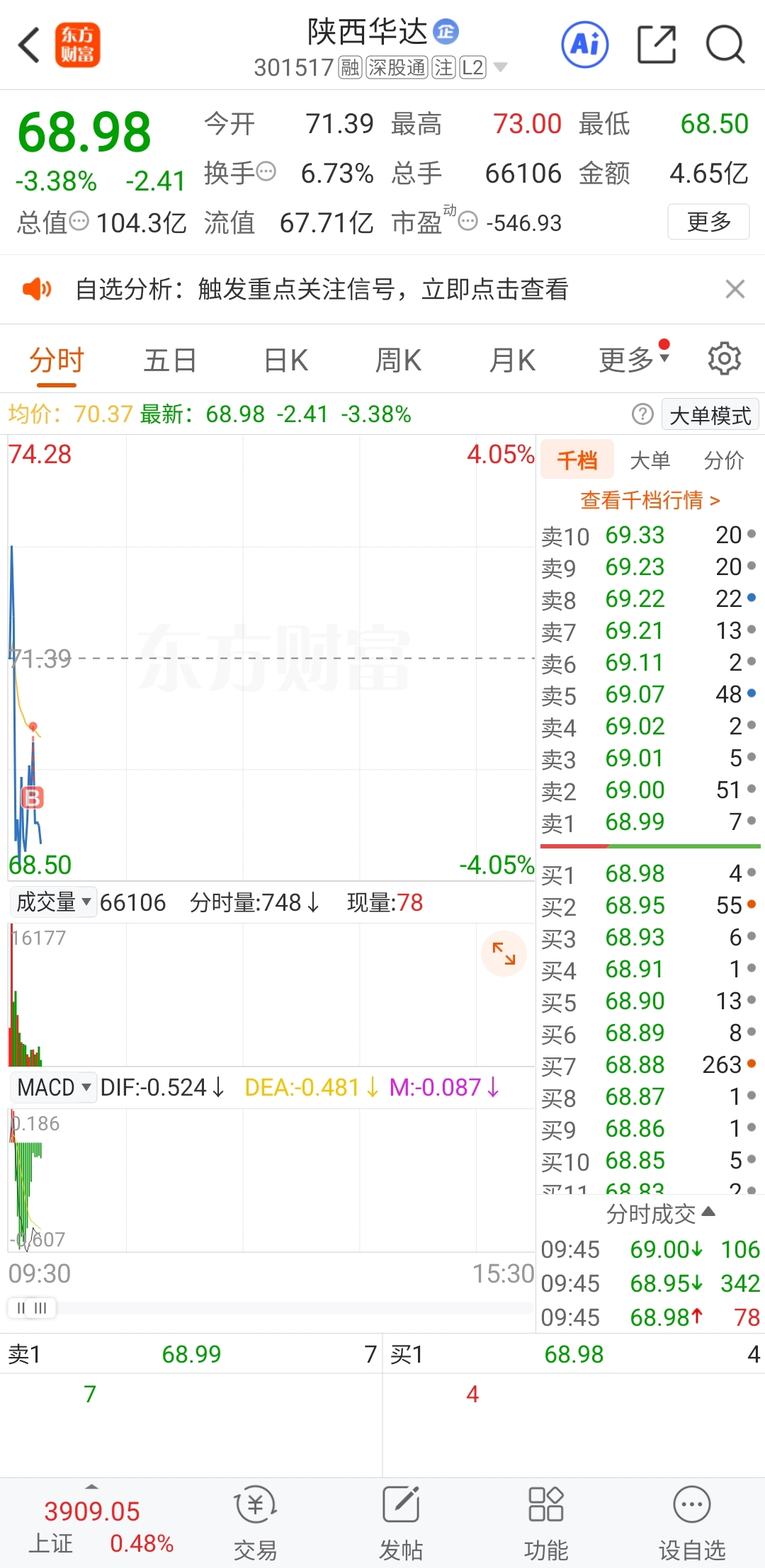 $陕西华达(SZ301517)$ 买什么什么跌,怎么办