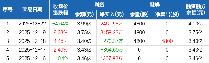 陕西华达:融资余额3.99亿元,创历史新高(12-22)
