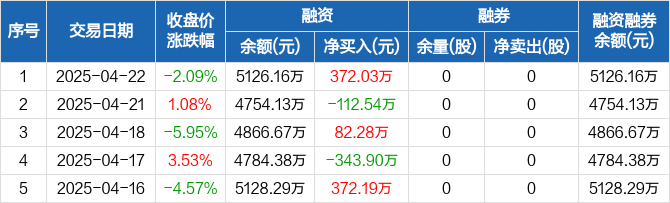 长华化学:融资净买入372.03万元,融资余额5126.16万元(04-22)