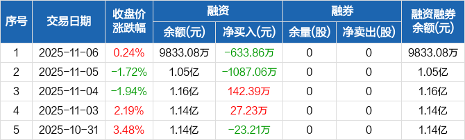 长华化学:融资净偿还633.86万元,融资余额9833.08万元(11-06)