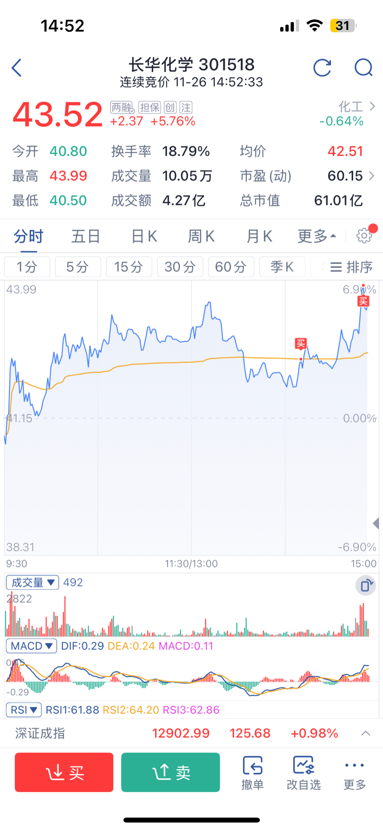 $长华化学(SZ301518)$ 不该追高
