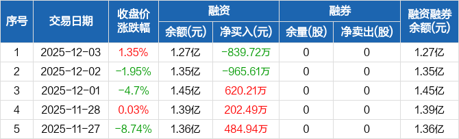 长华化学:融资净偿还839.72万元,融资余额1.27亿元(12-03)