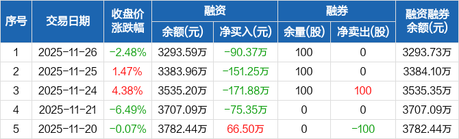 舜禹股份:融资余额3293.59万元,创近一年新低(11-26)