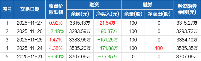舜禹股份:融资净买入21.54万元,融资余额3315.13万元(11-27)