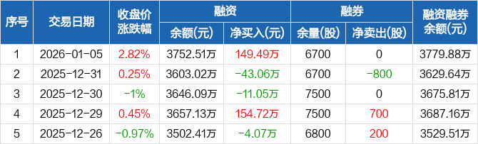 万邦医药:融资净买入149.49万元,融资余额3752.51万元(01-05)