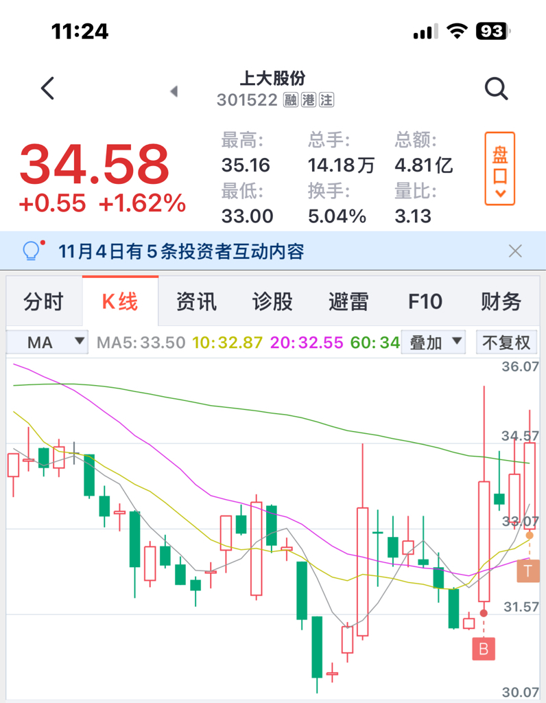 $上大股份(SZ301522)$ 这犭句日的低位减持真的是在搞事情,早上清完仓幸好又接了点回来哟。