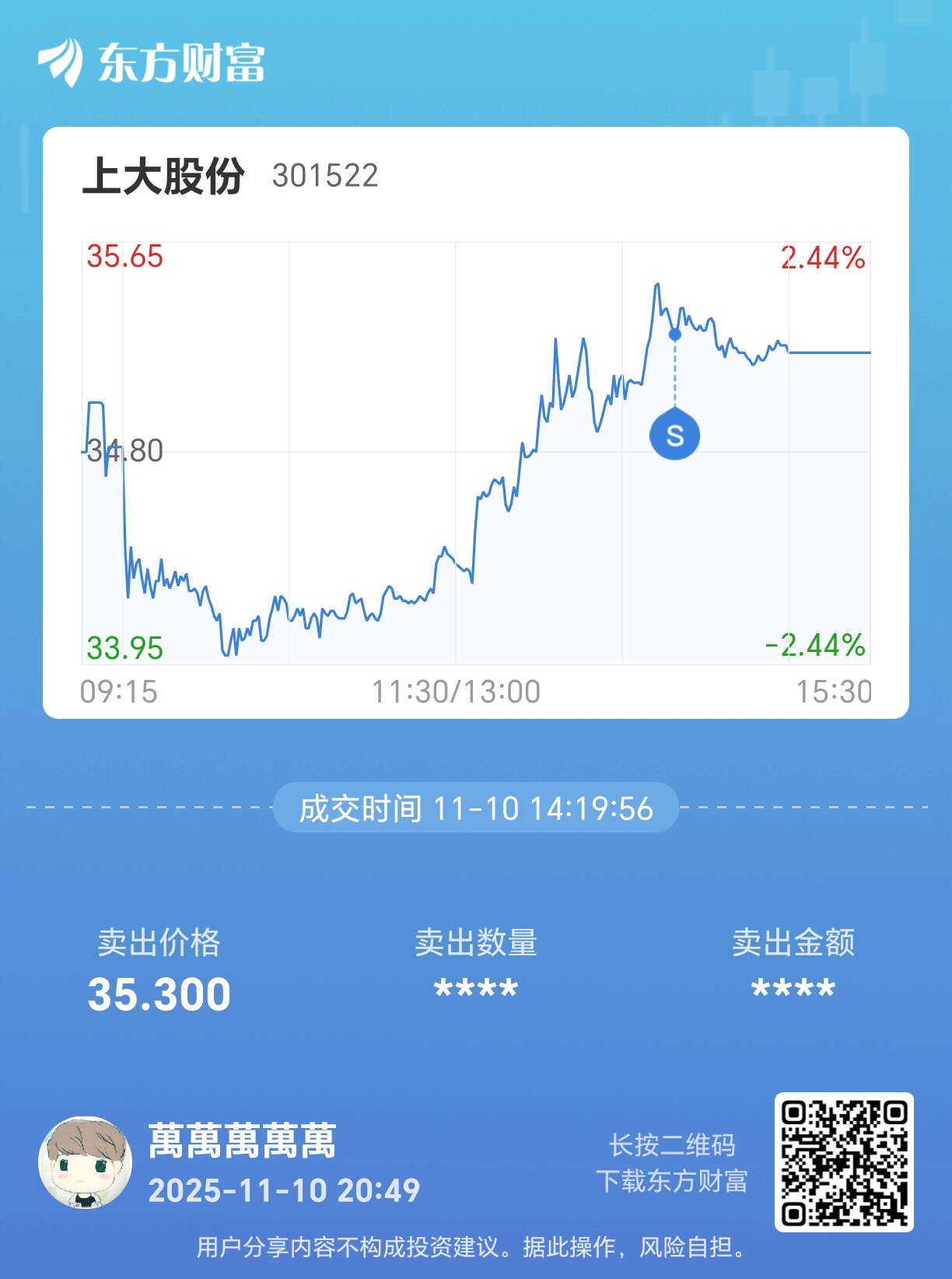 温馨提示: 1.根据《证券法》规定,禁止编造、传播虚假信息或者误导性信息,扰乱证券市场;2.用户在本社区发表的所有资料、言论等仅代表个人观点,与本网站立场无关,不对您构成任何投资建议。用户应基于自己的独立判断,自行决定证券投资并承担相应风险。《东方财富社区管理规定》