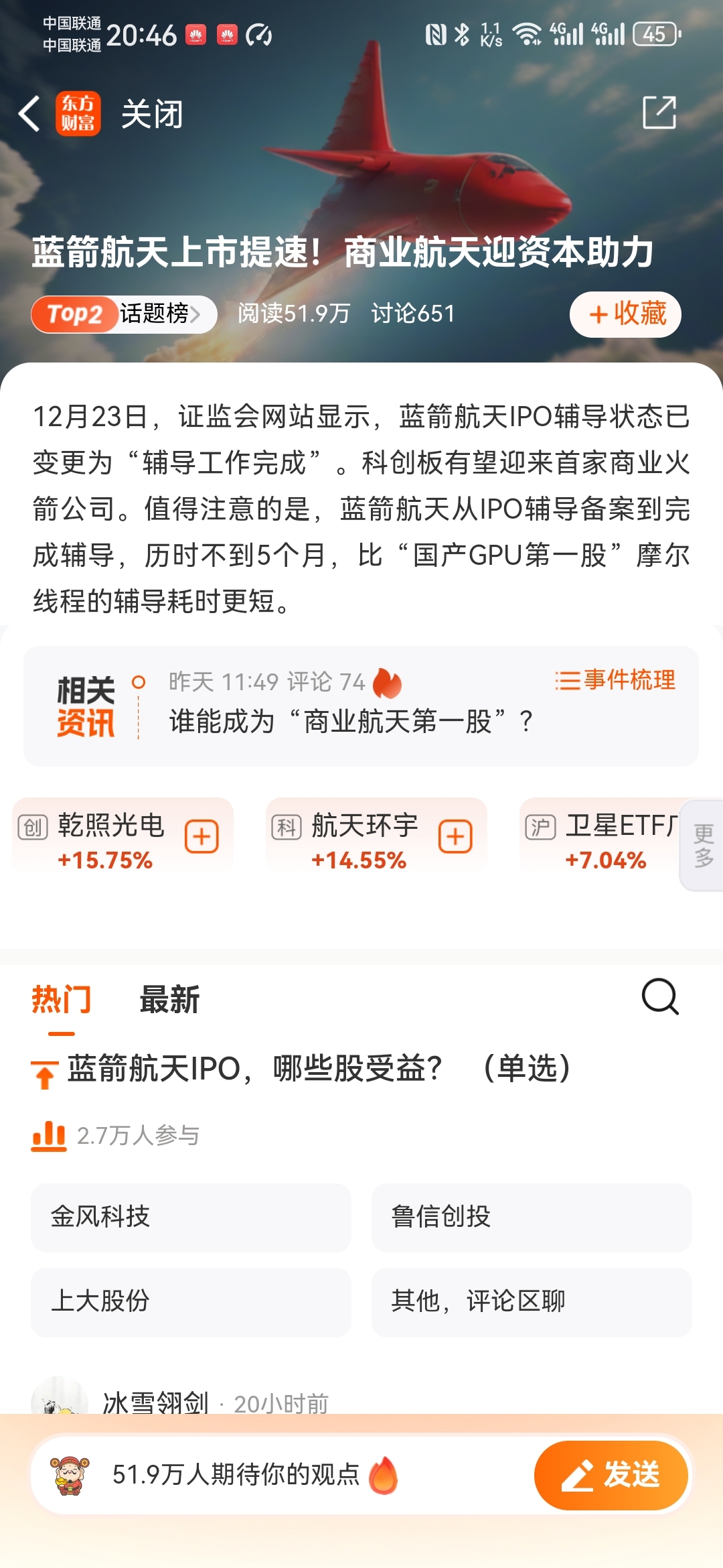 上大申报的正是《航空航天高温合金关键制备技术及应用》项目获得一等奖,蓝箭航空IPO受理,商业航空最大痛点是火箭回收,只有成功火箭回收上天成本才能大幅下降,上大是卖铲子公司,国内唯一性和垄断性,能改变低毛利情况,高毛利+航空认证长周期,决定轻易不会换供应商。下周上大起飞,家人们坐好扶稳!
