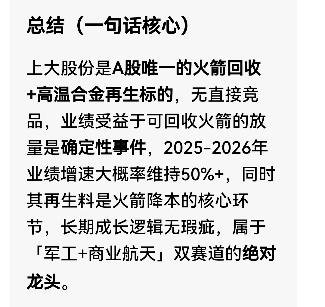$上大股份(SZ301522)$ 火箭回收绝对龙头,降本增效核心