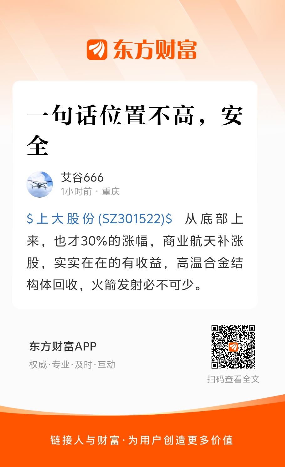 郑重声明:用户在财富号/股吧/博客等社区发表的所有信息(包括但不限于文字、视频、音频、数据及图表)仅代表个人观点,与本网站立场无关,不对您构成任何投资建议,据此操作风险自担。请勿相信代客理财、免费荐股和炒股培训等宣传内容,远离非法证券活动。请勿添加发言用户的手机号码、公众号、微博、微信及QQ等信息,谨防上当受骗!