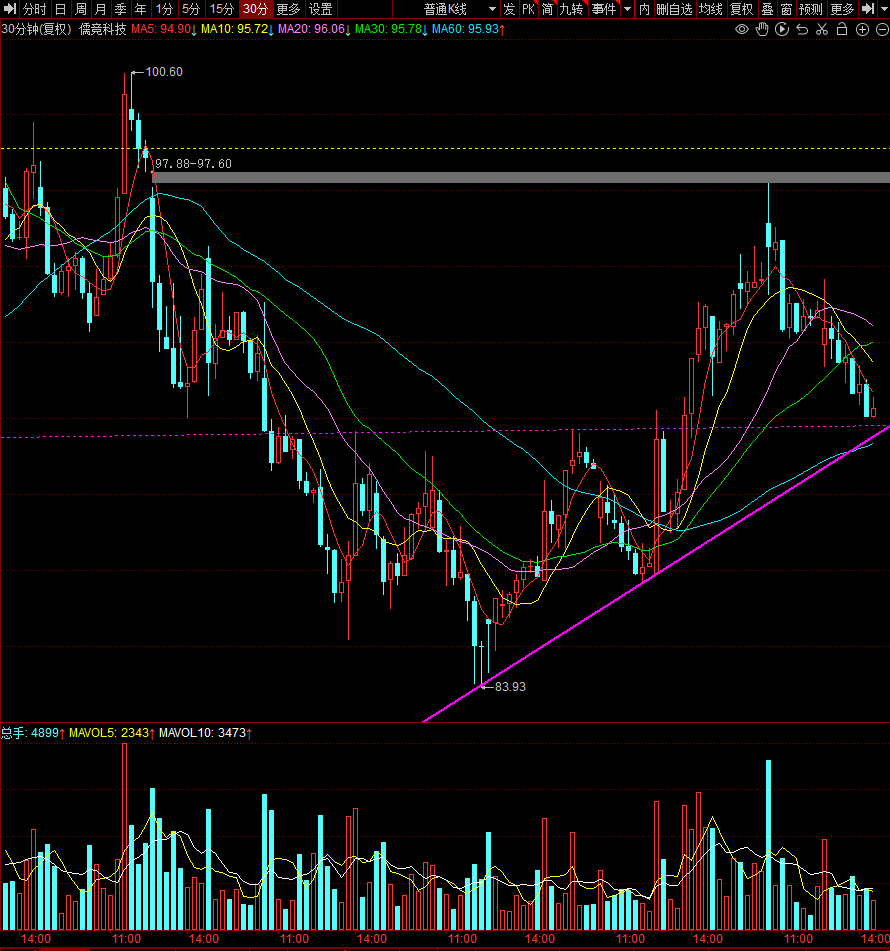 30分钟K线和60分钟K线已进入超卖状态,或进入至少30/60分钟级别的反弹,准备割肉的谨慎戒急。个人观点,仅作交流,不作投资依据。