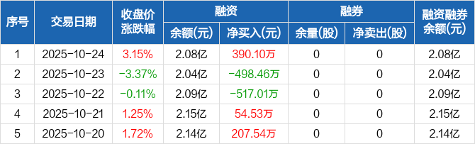 儒竞科技:融资净买入390.1万元,融资余额2.08亿元(10-24)