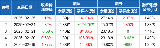 国际复材:融资净买入141.04万元,融资余额1.39亿元(02-25)