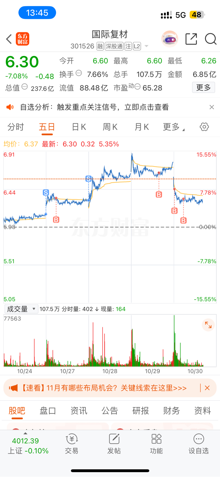 $国际复材(SZ301526)$ 6.65,6.45,6.33补了三次了,高买地卖好几次了,能不能红了今天