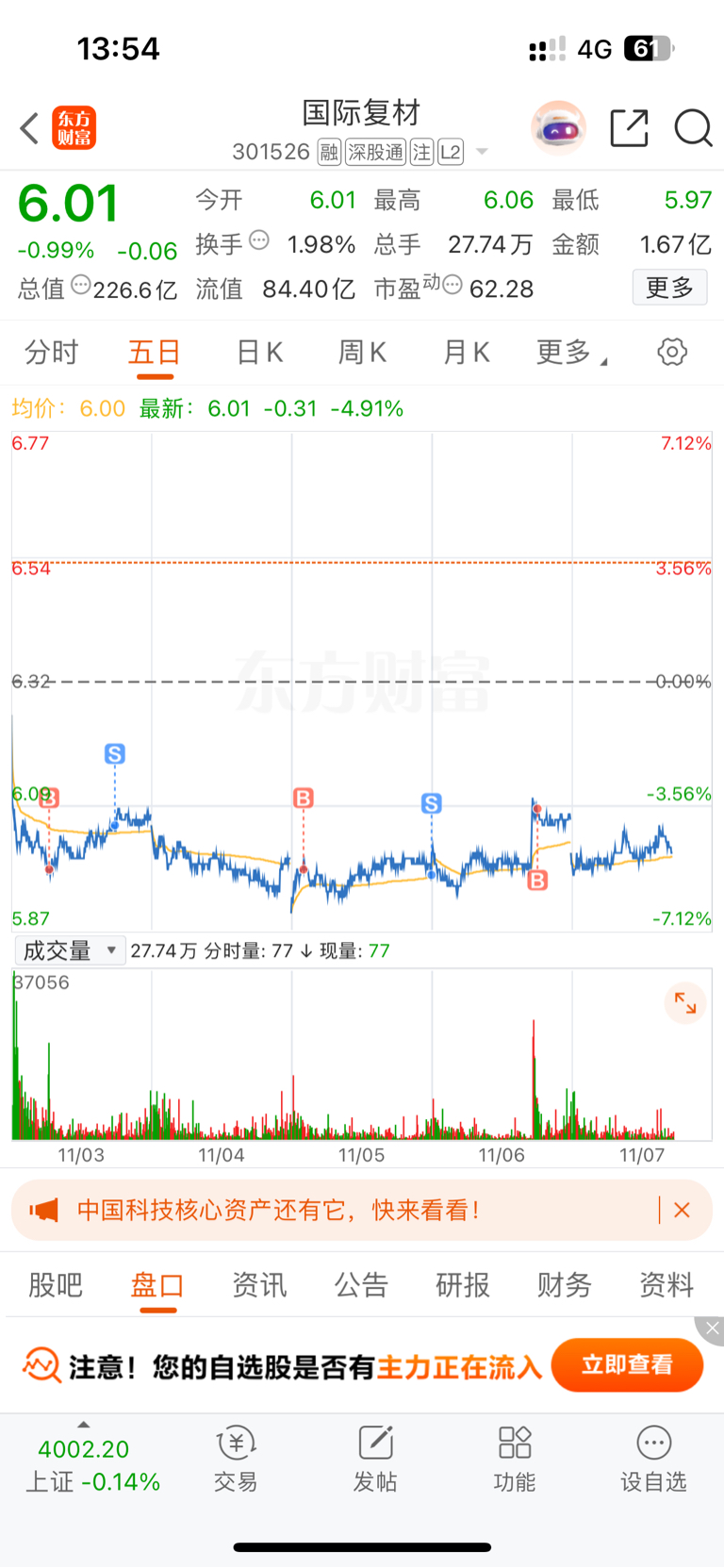 $国际复材(SZ301526)$ 昨天6.09加仓的,一点不给机会呀