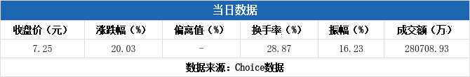 深交所2025年12月5日交易公开信息显示,国际复材因属于日涨幅达到15%的前5只证券而登上龙虎榜。国际复材当日报收7.25元,涨跌幅为20.03%,换手率28.87%,振幅16.23%,成交额28.07亿元。