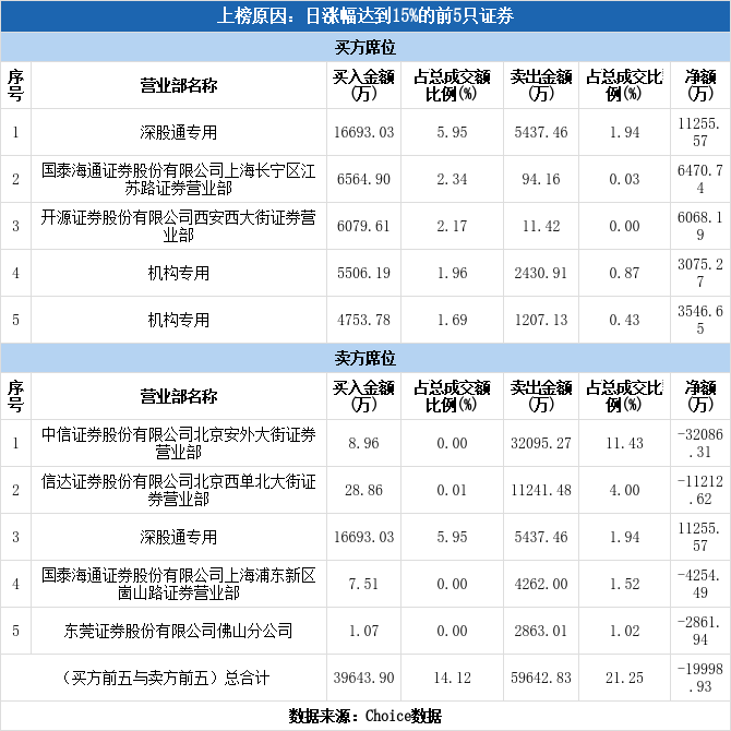 多主力现身龙虎榜,国际复材涨停(12-05)