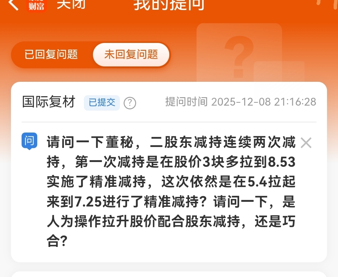 $国际复材(SZ301526)$ 我问了董秘一个问题,大概率事件是不会回答的!